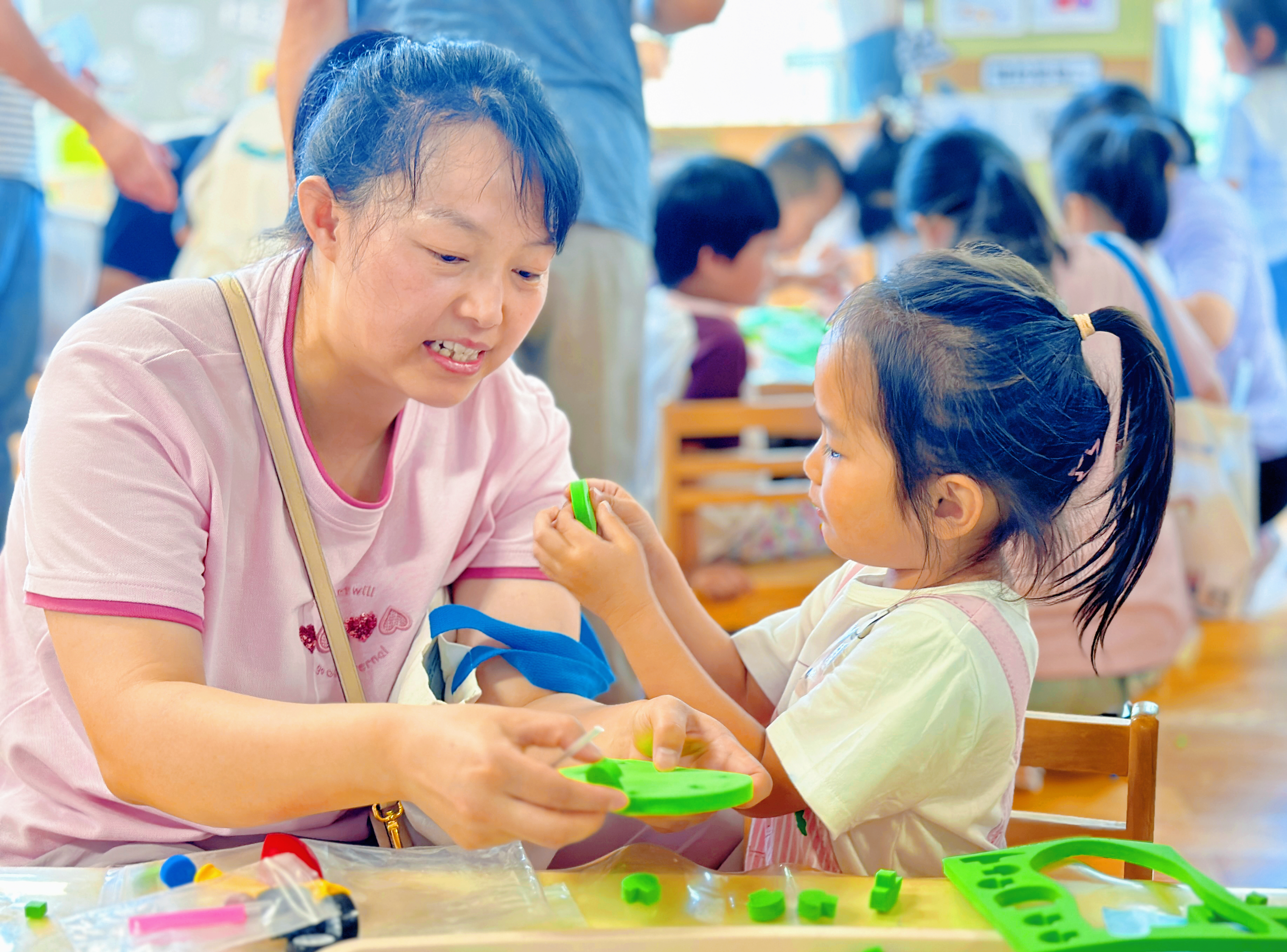 本次活动,幼儿园共创设了14个兼具开放性与参与性的游戏场域,在充满科技元素的环境中,每个角落都留下了孩子和爸爸妈妈快乐的足迹。空气动力车、磁铁对对碰、弹球大挑战、纸杯投影仪、DIY星球灯、非遗漆扇……一件件设计新颖、创意独特的科学小制作,一份份精美的科创手工作品亮相在本次科技节活动中。在边玩、边赏、边探索的过程中,孩子们对生活中的科学现象和原理产生了浓厚的兴趣,感受到科学的无限魅力。