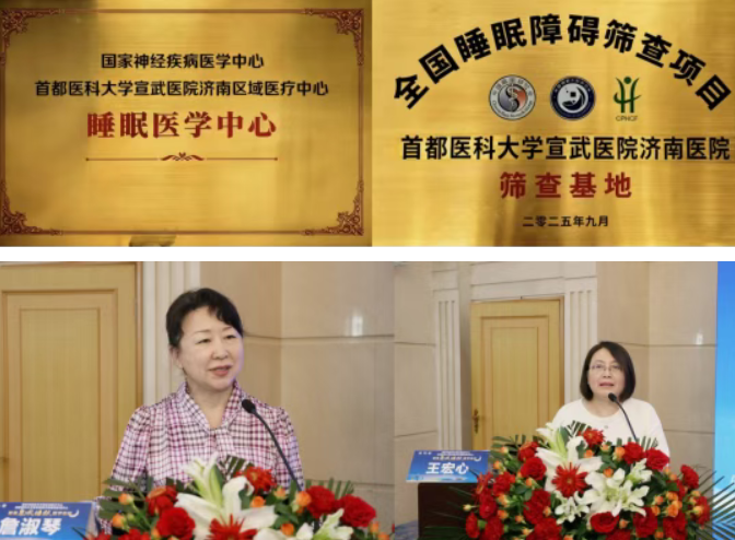 本次论坛的重要里程碑事件——国家神经疾病区域医疗中心首都医科大学宣武医院济南区域医疗中心睡眠医学中心揭牌仪式同步举行。首都医科大学宣武医院詹淑琴教授、首都医科大学宣武医院济南医院癫痫中心及睡眠医学中心主任任连坤教授与现场专家学者共同为中心揭牌,标志着该中心正式投入运行。与此同时,中心获授“全国睡眠筛查项目筛查基地”称号,这一荣誉不仅是对其专业能力的认可,更赋予了其承担区域睡眠健康筛查与干预任务的重要使命。
