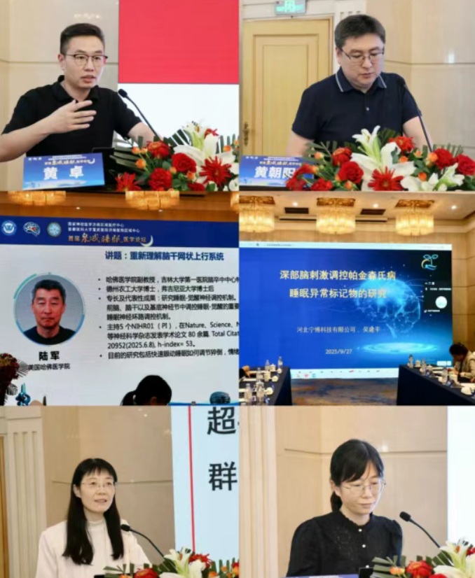 学术交流环节精彩纷呈,大咖云集的专题报告构建起多维度、深层次的知识体系。詹淑琴教授率先以“中国睡眠医学的发展与机遇”为题,系统梳理学科发展脉络,精准研判当前态势与未来方向,为各级睡眠医学中心的建设运营提供了兼具前瞻性与实操性的指导建议。北京大学医学部黄卓教授、美国哈佛医学院陆军教授分别从药物研发与神经解剖两大视角切入,分享研究成果与突破方向;宁博科技首席科学家吴建平博士与山东第一医科大学附属省立医院相媛媛教授则聚焦帕金森病睡眠障碍,分别从电生理研究与临床诊疗维度展开深度解析,为临床实践以及未来研究方向提供了宝贵思路;首都医科大学宣武医院黄朝阳教授围绕“睡眠医学大数据与人工智能研究”,展现了技术创新与学科融合的全新可能;山东中医药大学附属医院滕晶教授则带来中西医结合诊疗睡眠障碍的新进展,为学科发展提供了多元思路。