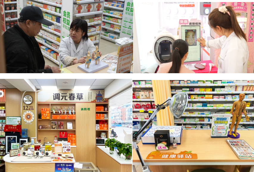 针对社区居民的传统养生需求,养生集合店深耕中医药特色服务,以道地药材为核心,提供中药调剂、专业代煎、个性化养生方调配等一站式服务,满足居民养生调理需求;针对中老年群体突出的骨健康需求,168家门店实现骨健康服务全覆盖,免费提供骨病诊查、会员建档、用药指导及物理调理等综合服务,由骨健康专员一对一跟进;契合科学护肤与颜值管理需求,专业护肤特色店配备专业美妆顾问团队,设置美丽魔镜体验区,提供皮肤检测、成分解析、护肤方案指导等专业服务,助力居民科学护肤、健康变美。