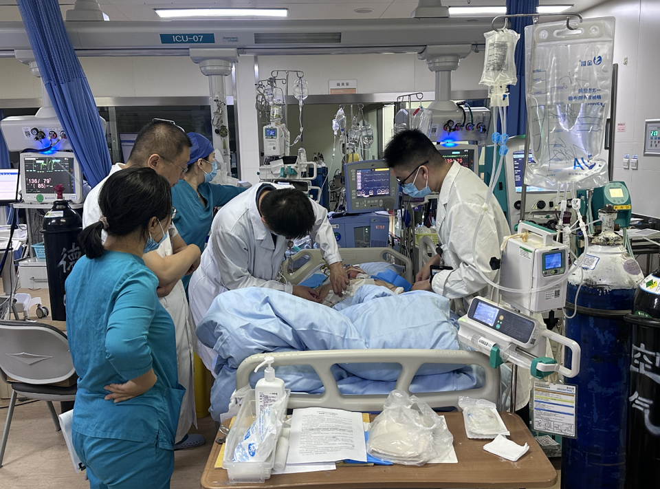 在省中医急诊和ICU,运用先进的技术和设备,创造了很多“生命奇迹”。2021年12月,一名陷入休克的车祸女大学生被送入省中医,入院时已陷入昏迷,呼吸衰竭、失血性休克,初步检查后诊断为创伤性脾破裂,骨盆、肋骨、四肢、颅骨骨折,其中骨盆骨折和脾破裂导致了大量出血,严重危及其生命安全,同时出现了循环、呼吸、中枢神经三类脏器的异常,生命垂危。医院迅速组织多学科联合会诊,在积极液体复苏、血液升压、维持呼吸的支持下,病人顺利被送入手术室,以最快的速度解决了最危及生命的脾破裂和骨盆骨折问题。由于患者术前伴有创伤性湿肺,导致其术后呼吸状况急剧恶化,后续,在体外膜肺氧合(ECMO)的介入下,患者才终于病情稳定,五六天后病人的肺恢复了正常功能,大约1年后便顺利返回了校园。